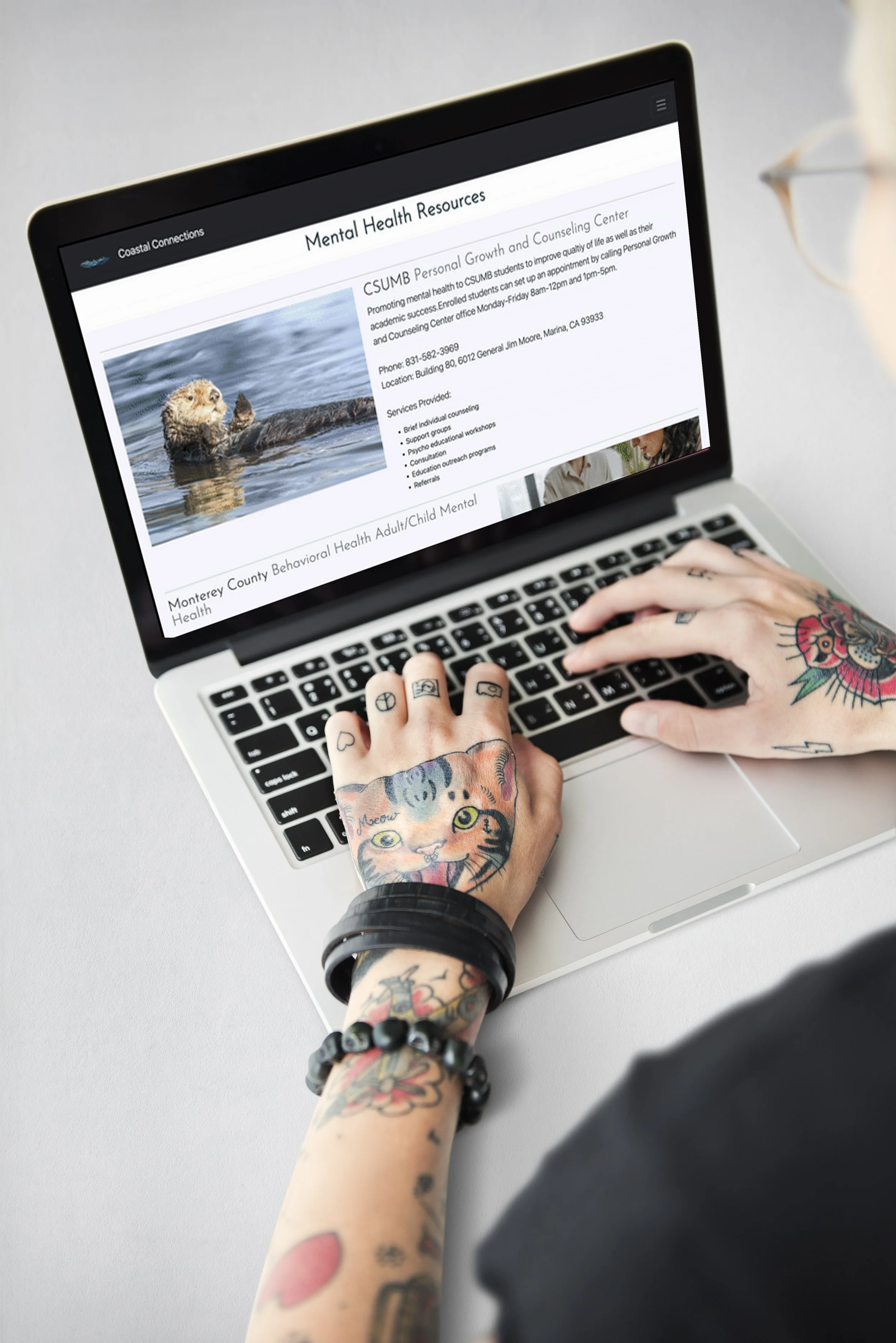 Coastal Connections is a website created by a fellow designer and myself to bring awareness on the resources located in Monterey County. These resources consist of mental, physical, and spiritual health as well as help for veterans and an emergency crisis page. What we wanted to create was a one-stop website where one who needed these resources in Monterey County could go to find help.