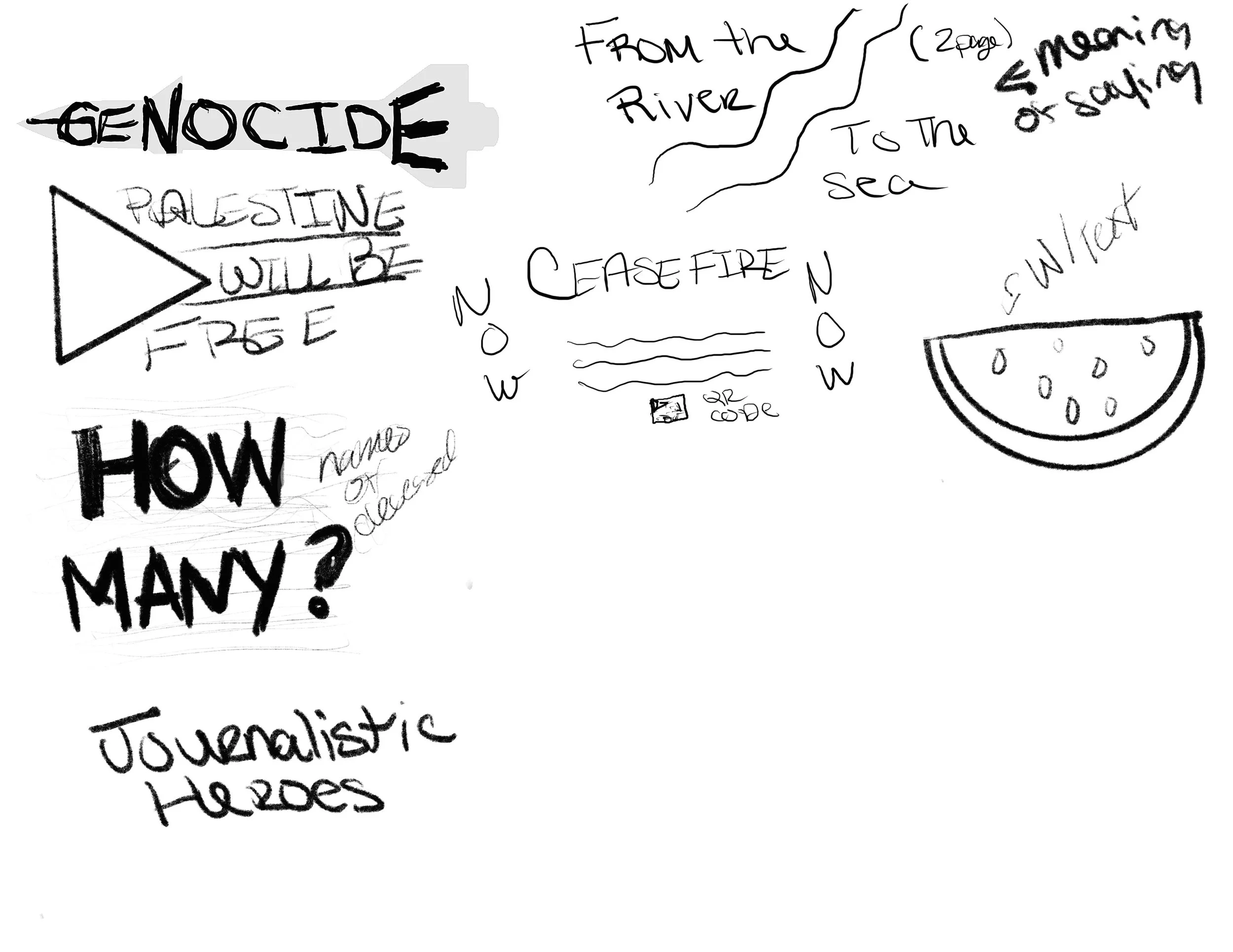 Displacement was more of a passion project. I wanted to bring awareness of the situation in Palestine because it’s something that is important to me. I wanted to make a timeline of the history of Palestinians being displaced because it’s not something that just started in October 2023 it’s been continuous for over 100 years.